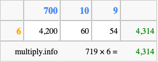 Finally, we add up all the sums we found in step 3 to get our final answer to 719 times 6.