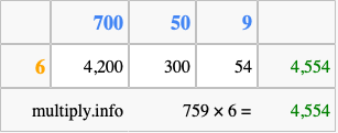 That's all there is to it! As you can see from the box above, the answer to 759 times 6 using the box method is 4,554.