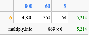 Finally, we add up all the sums we found in step 3 to get our final answer to 869 times 6.
