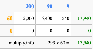 Below is an illustration showing you how to calculate 299 times 60 using the box method, using the instructions above.