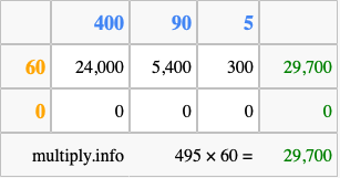 Below is an illustration showing you how to calculate 495 times 60 using the box method, using the instructions above.