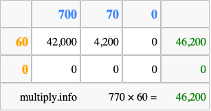 Below is an illustration showing you how to calculate 770 times 60 using the box method, using the instructions above.