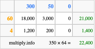 Finally, we add up all the sums we found in step 3 to get our final answer to 350 times 64.