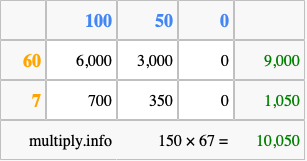 Finally, we add up all the sums we found in step 3 to get our final answer to 150 times 67.