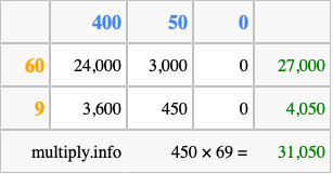 Finally, we add up all the sums we found in step 3 to get our final answer to 450 times 69.