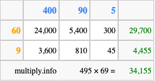 Finally, we add up all the sums we found in step 3 to get our final answer to 495 times 69.