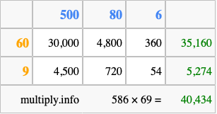 Finally, we add up all the sums we found in step 3 to get our final answer to 586 times 69.