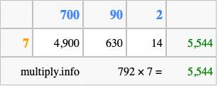 Below is an illustration showing you how to calculate 792 times 7 using the box method, using the instructions above.