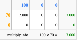 That's all there is to it! As you can see from the box above, the answer to 100 times 70 using the box method is 7,000.