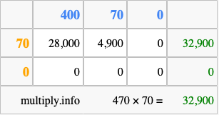 Finally, we add up all the sums we found in step 3 to get our final answer to 470 times 70.