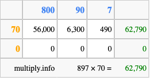 Finally, we add up all the sums we found in step 3 to get our final answer to 897 times 70.