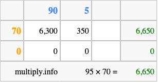 Finally, we add up all the sums we found in step 3 to get our final answer to 95 times 70.