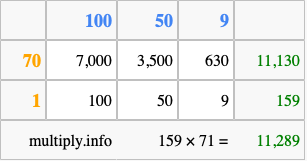 Finally, we add up all the sums we found in step 3 to get our final answer to 159 times 71.