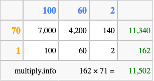 Finally, we add up all the sums we found in step 3 to get our final answer to 162 times 71.