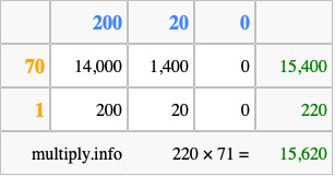 Finally, we add up all the sums we found in step 3 to get our final answer to 220 times 71.