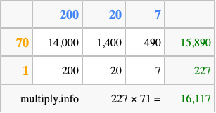 Finally, we add up all the sums we found in step 3 to get our final answer to 227 times 71.