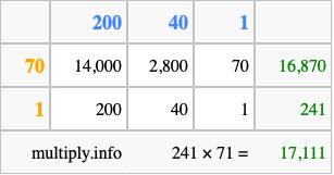 Finally, we add up all the sums we found in step 3 to get our final answer to 241 times 71.
