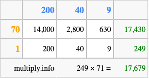 Finally, we add up all the sums we found in step 3 to get our final answer to 249 times 71.