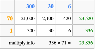 Finally, we add up all the sums we found in step 3 to get our final answer to 336 times 71.
