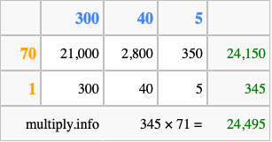 Finally, we add up all the sums we found in step 3 to get our final answer to 345 times 71.