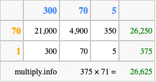 Finally, we add up all the sums we found in step 3 to get our final answer to 375 times 71.
