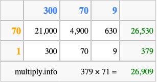 Finally, we add up all the sums we found in step 3 to get our final answer to 379 times 71.
