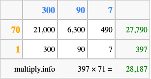 Finally, we add up all the sums we found in step 3 to get our final answer to 397 times 71.