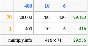 Finally, we add up all the sums we found in step 3 to get our final answer to 416 times 71.