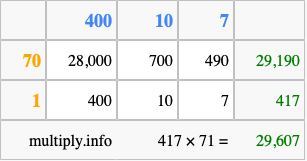 Finally, we add up all the sums we found in step 3 to get our final answer to 417 times 71.