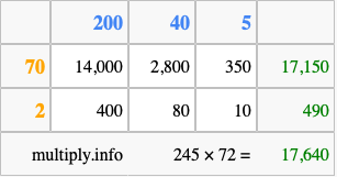 Finally, we add up all the sums we found in step 3 to get our final answer to 245 times 72.