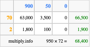 Finally, we add up all the sums we found in step 3 to get our final answer to 950 times 72.