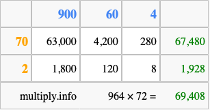 Finally, we add up all the sums we found in step 3 to get our final answer to 964 times 72.
