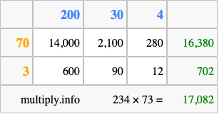 Finally, we add up all the sums we found in step 3 to get our final answer to 234 times 73.