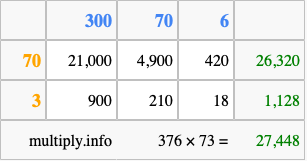 Finally, we add up all the sums we found in step 3 to get our final answer to 376 times 73.