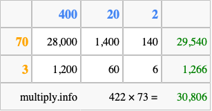 Finally, we add up all the sums we found in step 3 to get our final answer to 422 times 73.