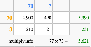 Finally, we add up all the sums we found in step 3 to get our final answer to 77 times 73.