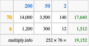 Below is an illustration showing you how to calculate 252 times 76 using the box method, using the instructions above.