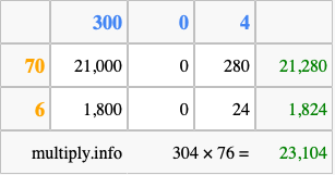 Finally, we add up all the sums we found in step 3 to get our final answer to 304 times 76.