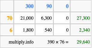 Finally, we add up all the sums we found in step 3 to get our final answer to 390 times 76.