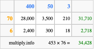 Finally, we add up all the sums we found in step 3 to get our final answer to 453 times 76.