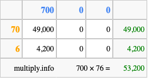 Finally, we add up all the sums we found in step 3 to get our final answer to 700 times 76.