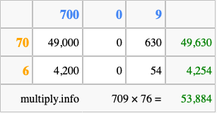 That's all there is to it! As you can see from the box above, the answer to 709 times 76 using the box method is 53,884.