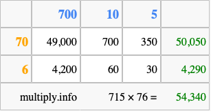 Finally, we add up all the sums we found in step 3 to get our final answer to 715 times 76.