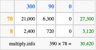 Finally, we add up all the sums we found in step 3 to get our final answer to 390 times 78.