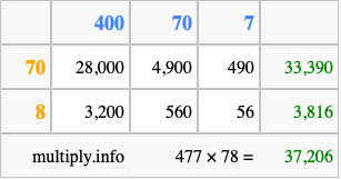That's all there is to it! As you can see from the box above, the answer to 477 times 78 using the box method is 37,206.