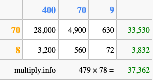 Below is an illustration showing you how to calculate 479 times 78 using the box method, using the instructions above.