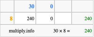 That's all there is to it! As you can see from the box above, the answer to 30 times 8 using the box method is 240.