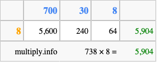 Finally, we add up all the sums we found in step 3 to get our final answer to 738 times 8.