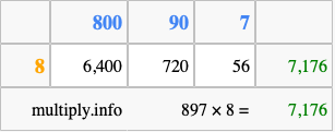 Finally, we add up all the sums we found in step 3 to get our final answer to 897 times 8.