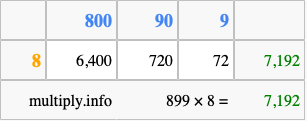 Finally, we add up all the sums we found in step 3 to get our final answer to 899 times 8.